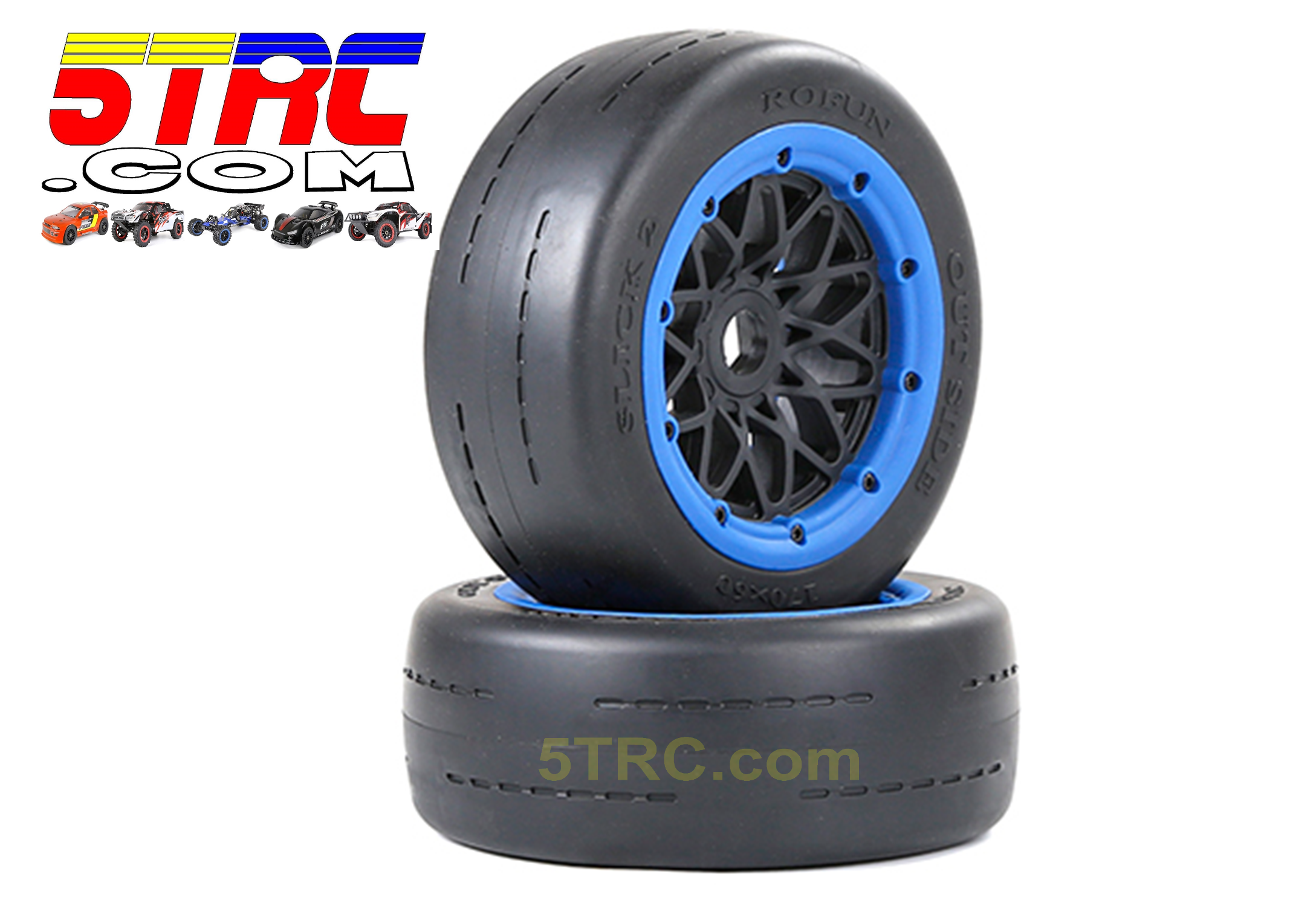 Enhance pavement performance with these Rofun 1/5 RC slicks front tires and wheels in blue. Designed for Baja 5B Gen2 platforms, this front tire and wheel pair delivers smooth rolling performance, improved steering precision, and consistent traction on hard surfaces.