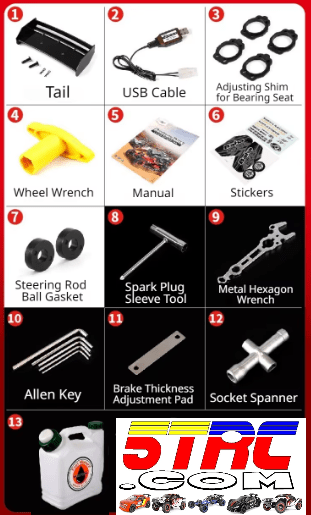 Minor crashes rarely cause significant damage. The flexible high-strength ABS components absorb impacts effectively during normal off-road driving.Fuel Mixing – Rovan 5B RC