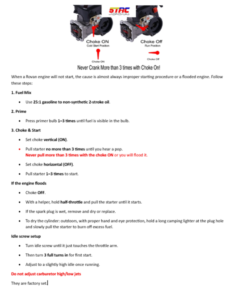 Important: Also, never crank more than 3 times with the choke on.