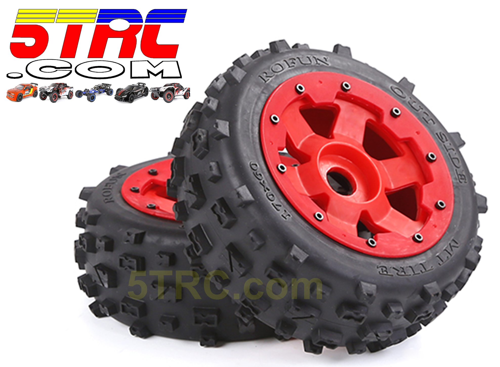 Upgrade your 1/5 scale RC vehicle with the Rovan MT 170×60 Tires Assembly on Red Wheels. Pre-mounted and ready to install, these tires deliver strong off-road traction, stable handling, and durable performance across dirt, gravel, grass, and hardpack. Designed for standard 24mm hex hubs, they offer a direct-fit solution for Rovan and other Baja-style platforms.